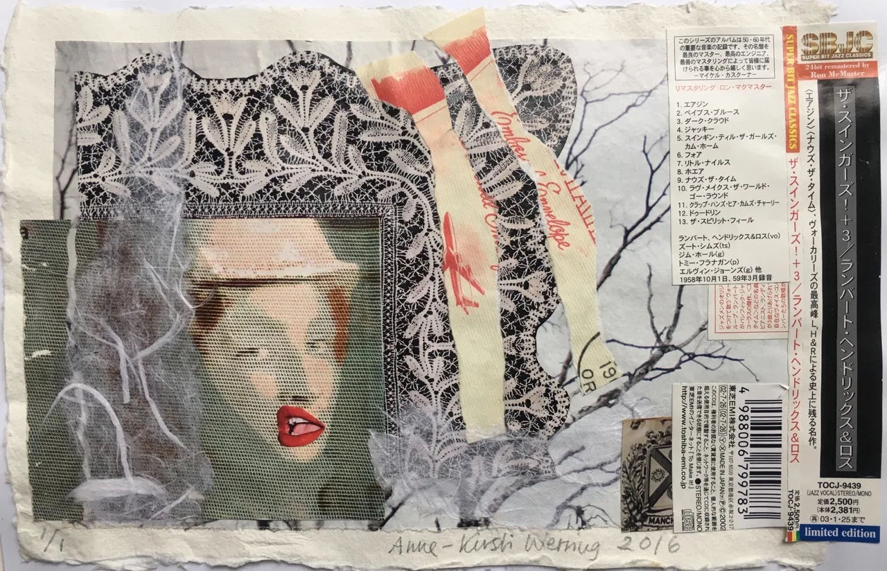 Mixed media. Collage på kluteapir. Format: 22 X 14 cm.