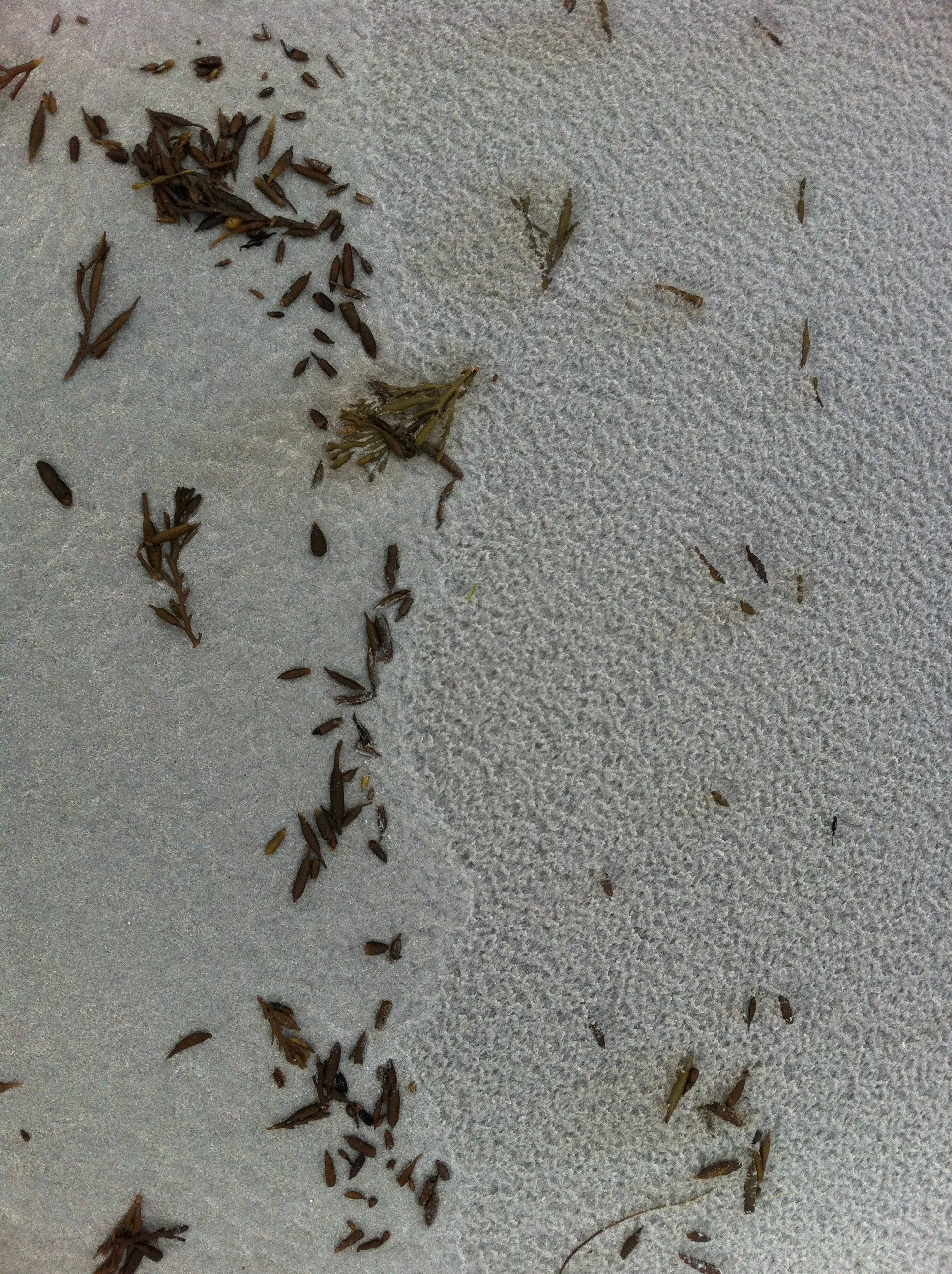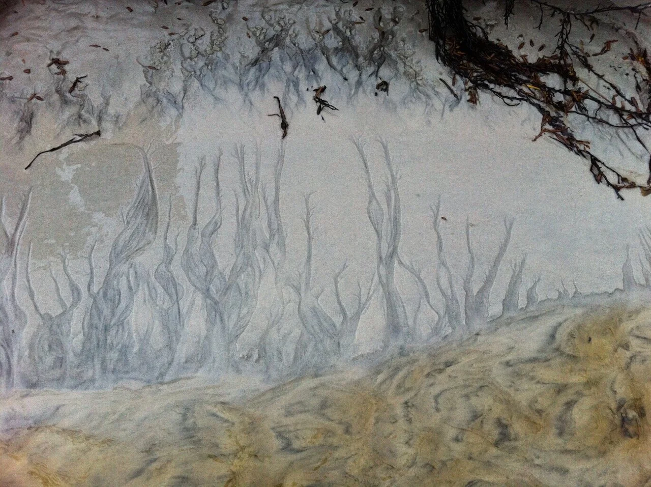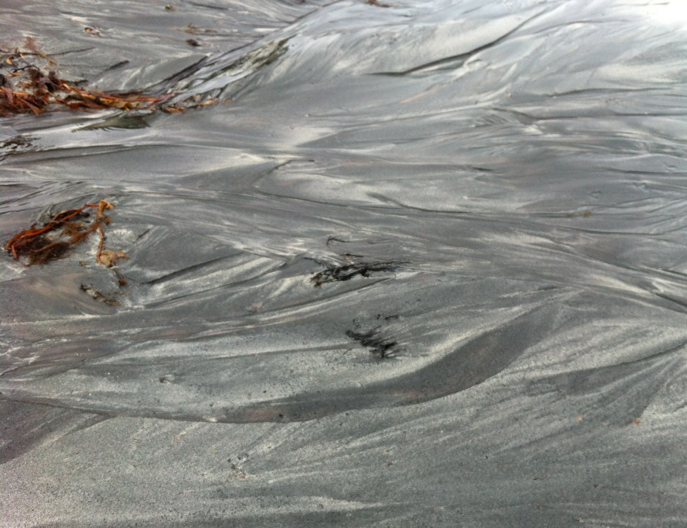 Utgangspunktet for at det ble en fotoutstilling (min første) var et opphold på Andøya i Vesterålen og på Senja. Havets utallige grafiske tegninger i sanden appellerte til min sans for det non-figurative mønsteret som jeg ser i mange ting.